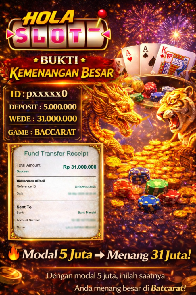 Selama bermain di HOLASLOT, banyak pemain telah meraih kemenangan besar yang dibagikan melalui halaman testimoni kami. Oleh karena itu, testimoni ini menjadi bukti nyata bahwa peluang menang sangat terbuka bagi siapa saja. Selanjutnya, dengan banyaknya promo menarik yang tersedia setiap hari, para pemain memiliki kesempatan lebih besar untuk meraih hasil maksimal. Sementara itu, berbagai bonus seperti cashback, free spin, dan turnamen berhadiah terus diluncurkan untuk menambah keseruan. Sebagai kesimpulan, HOLASLOT bukan hanya tempat bermain game online, tapi juga ladang keberuntungan yang layak Anda coba sekarang juga!.
