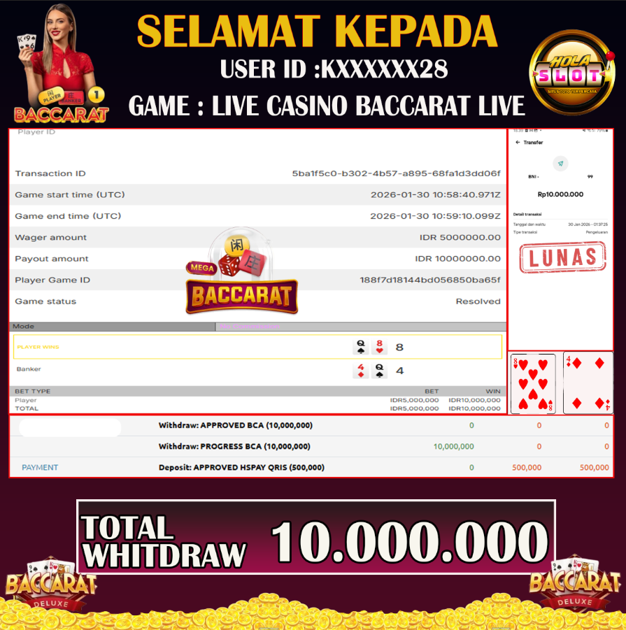 JACKPOT LIVE CASINO BACCARAT LIVE 30 JANUARI 2026 Jackpot Slot Gacor, Kemenangan Slot, Bukti Kemenangan Slot, Kemenangan Slot Pragmatic Play, Menang Slot online, Slot Gacor, Situs Aman Terpercaya, WD Berapapun Pasti DI Bayar Tuntas, Maxwin Slot Online.