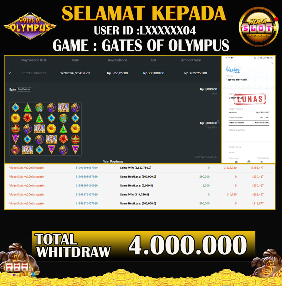 JACKPOT SLOT GATES OF OLYMPUS 19 FEBRUARY 2026 Jackpot Slot Gacor, Kemenangan Slot, Bukti Kemenangan Slot, Kemenangan Slot Pragmatic Play, Menang Slot online, Slot Gacor, Situs Aman Terpercaya, WD Berapapun Pasti DI Bayar Tuntas, Maxwin Slot Online.