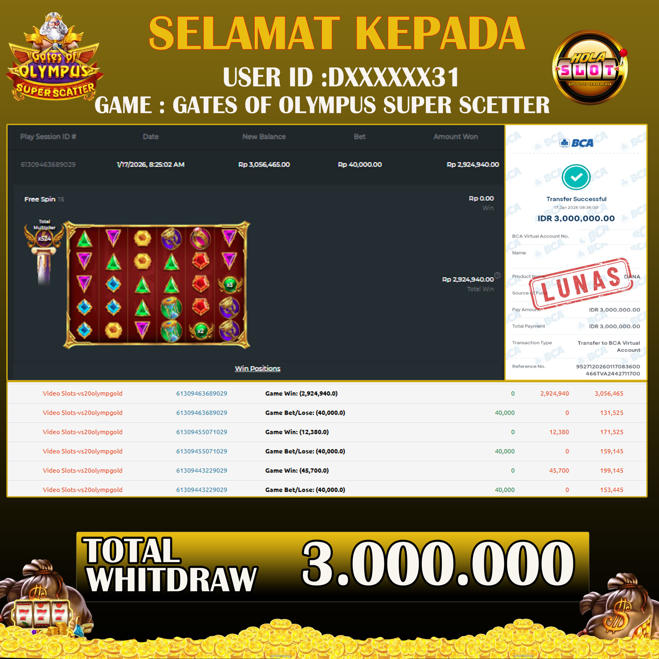 JACKPOT SLOT GATES OF OLYMPUS SUPER SCETTER 17 JANUARI 2026 Jackpot Slot Gacor, Kemenangan Slot, Bukti Kemenangan Slot, Kemenangan Slot Pragmatic Play, Menang Slot online, Slot Gacor, Situs Aman Terpercaya, WD Berapapun Pasti DI Bayar Tuntas, Maxwin Slot Online.