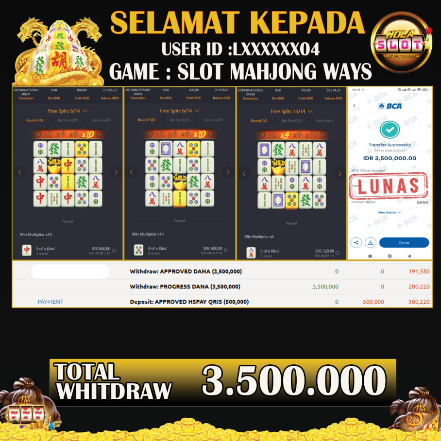 Selama bermain di HOLASLOT, banyak pemain telah meraih kemenangan besar yang dibagikan melalui halaman testimoni kami. Oleh karena itu, testimoni ini menjadi bukti nyata bahwa peluang menang sangat terbuka bagi siapa saja. Selanjutnya, dengan banyaknya promo menarik yang tersedia setiap hari, para pemain memiliki kesempatan lebih besar untuk meraih hasil maksimal. Sementara itu, berbagai bonus seperti cashback, free spin, dan turnamen berhadiah terus diluncurkan untuk menambah keseruan. Sebagai kesimpulan, HOLASLOT bukan hanya tempat bermain game online, tapi juga ladang keberuntungan yang layak Anda coba sekarang juga!.