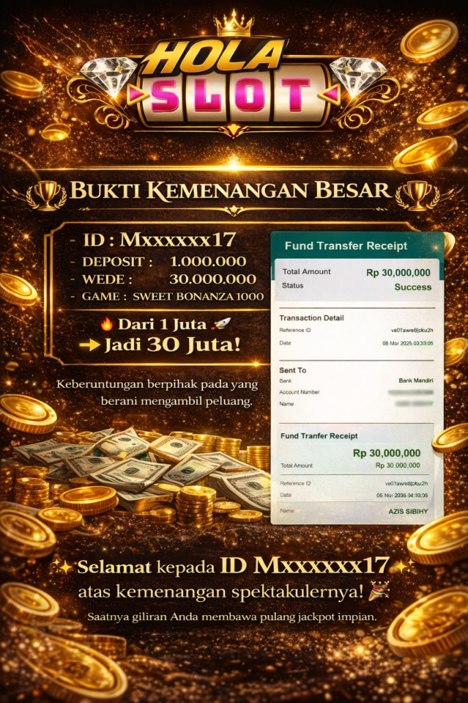 Selama bermain di HOLASLOT, banyak pemain telah meraih kemenangan besar yang dibagikan melalui halaman testimoni kami. Oleh karena itu, testimoni ini menjadi bukti nyata bahwa peluang menang sangat terbuka bagi siapa saja. Selanjutnya, dengan banyaknya promo menarik yang tersedia setiap hari, para pemain memiliki kesempatan lebih besar untuk meraih hasil maksimal. Sementara itu, berbagai bonus seperti cashback, free spin, dan turnamen berhadiah terus diluncurkan untuk menambah keseruan. Sebagai kesimpulan, HOLASLOT bukan hanya tempat bermain game online, tapi juga ladang keberuntungan yang layak Anda coba sekarang juga!.
